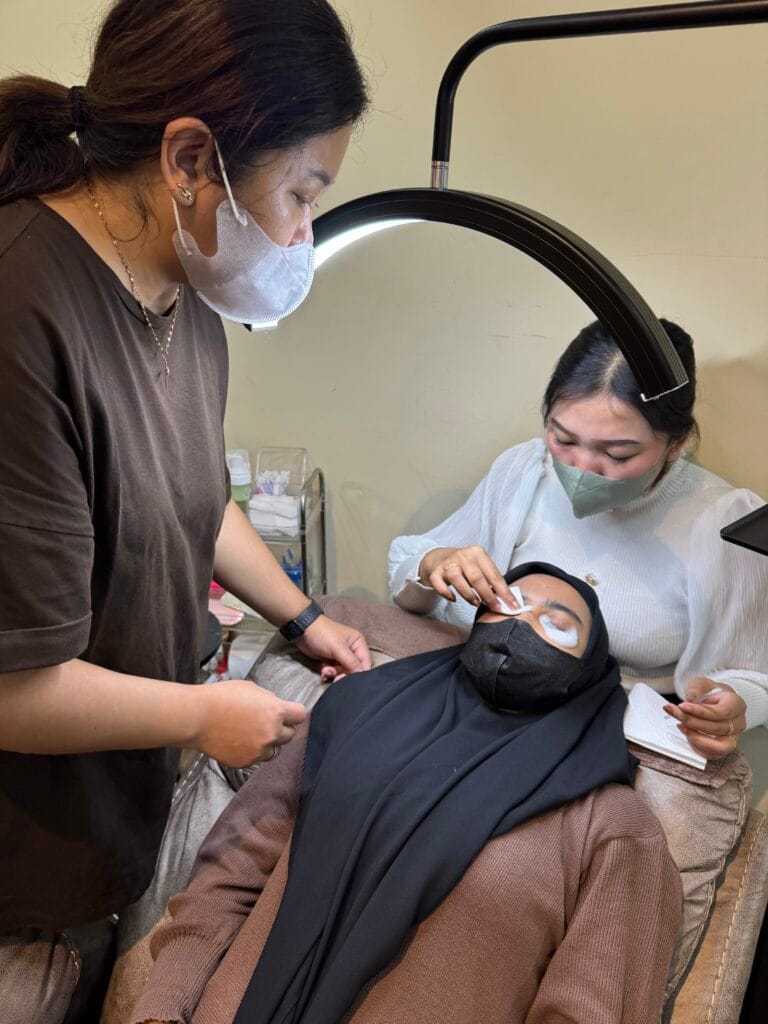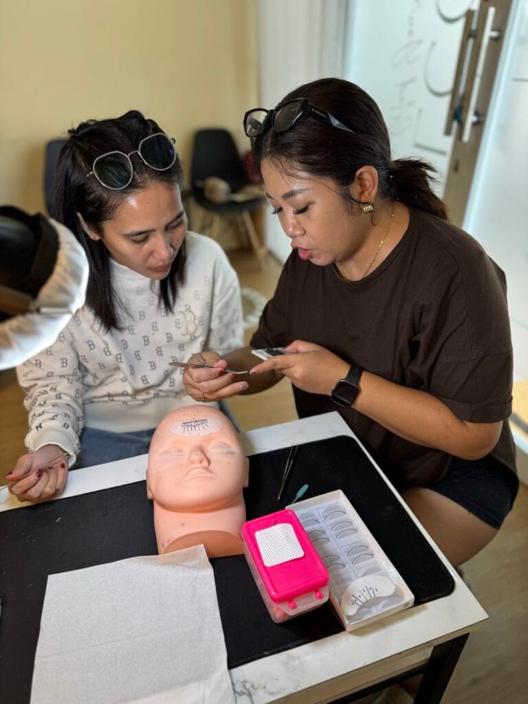 Praktek langsung merupakan bagian penting dari kursus eyelash extension kami.
